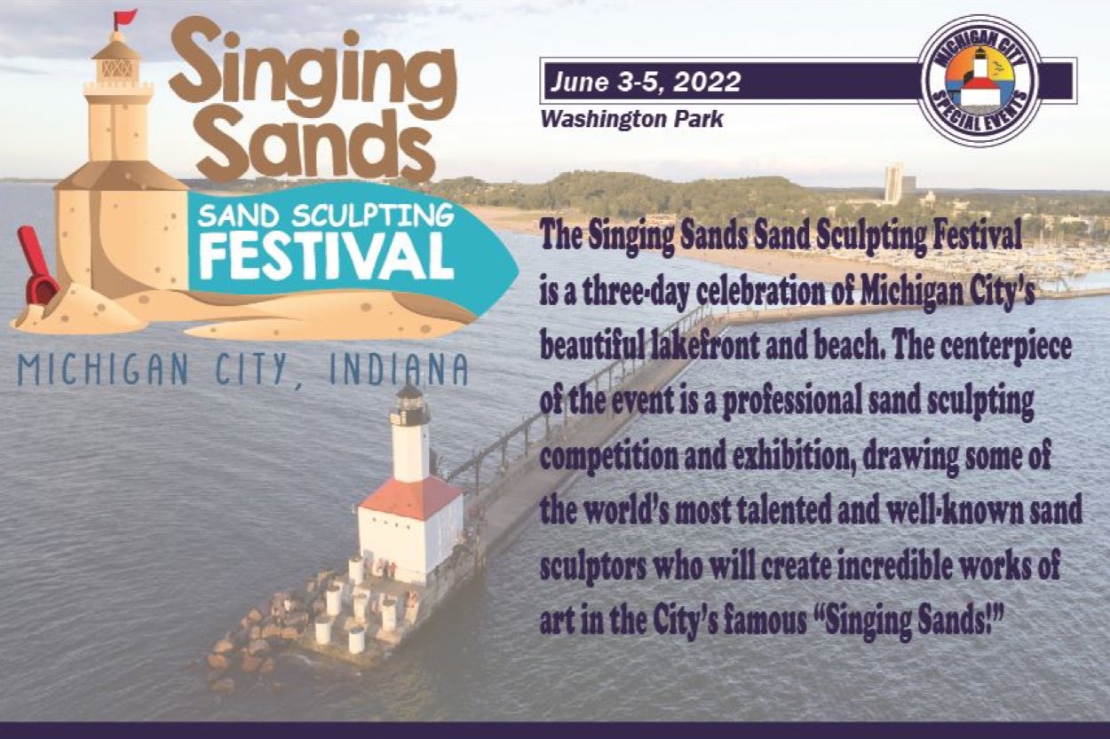 The Singing Sands Sand Sculpting Festival is a three-day celebration of Michigan City’s beautiful lakefront and beach. The centerpiece of the event is a professional sand sculpting exhibition and competition, drawing some of the world’s most talented and well-known sand sculptors who will create incredible works of art in the City’s famous “singing sands.” Michigan City has partnered with The Sand Lovers, LLC, a professional sand sculpting and event management company, who specializes in major sand sculpting events. Visit www.emichigancity.com/1246/Singing-Sands-Festival for event information, including art, craft and merchandise vendor opportunities, as well as volunteer opportunities, or visit our Facebook page, Michigan City Special Events. Visit www.thesandlovers.com to learn more about The Sand Lovers and professional sand sculpting events.