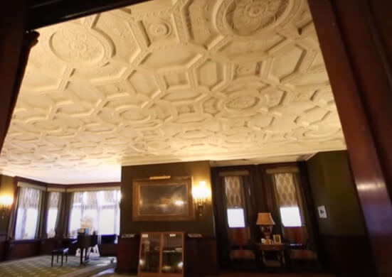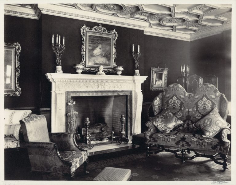 The mantel, crafted from Italian marble, serves as another noteworthy feature of the Drawing Room. Remarkably, the face of John H. Barker is intricately carved on either side, a customary practice of craftsmen to honor benefactors who commissioned significant works. This personal touch adds a layer of historical significance and tribute within the room's decor.